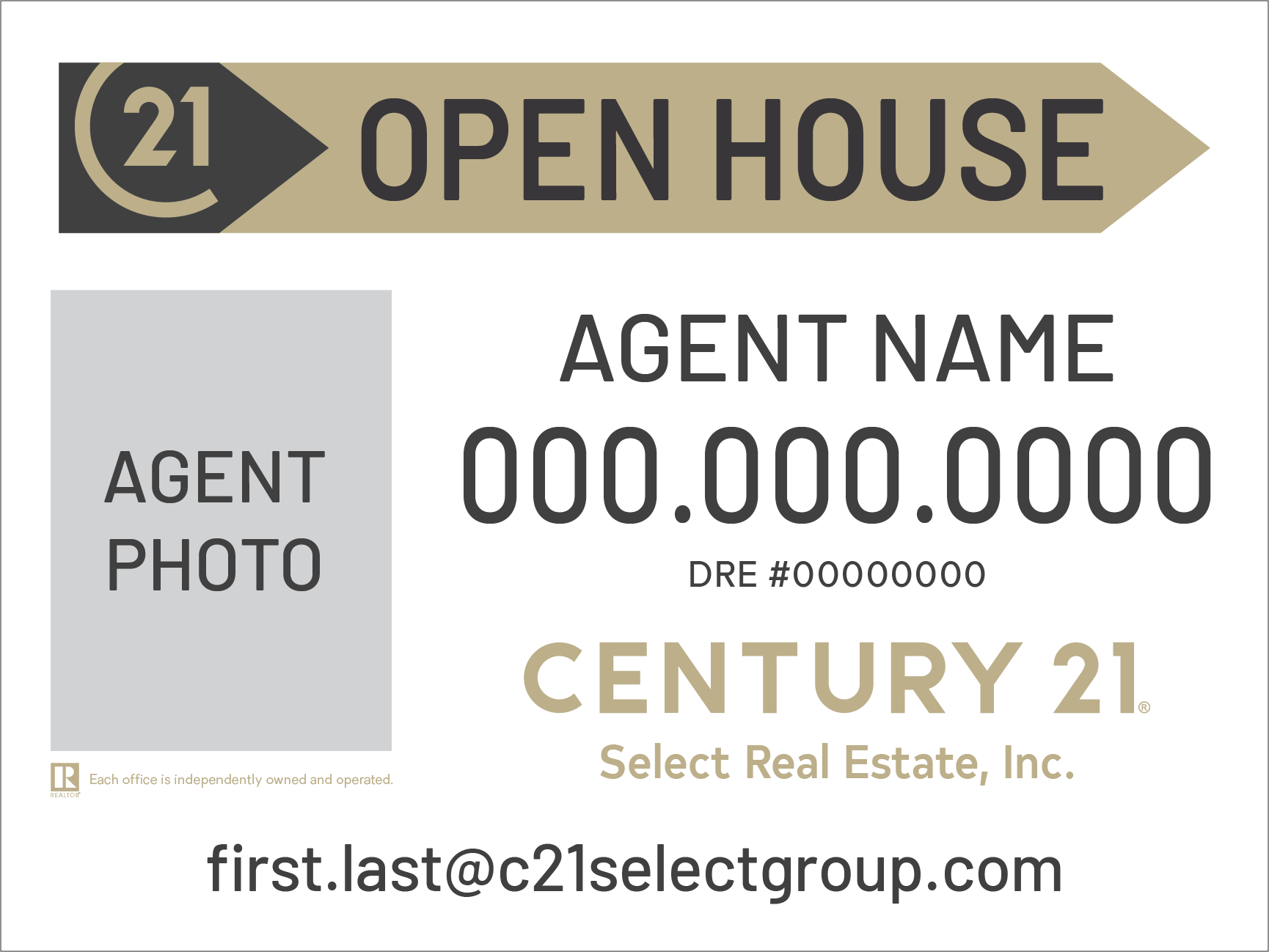 Home / Real Estate Sign Shop / Century 21 Signs / Century 21 18×24 Open House Template Light with Photo